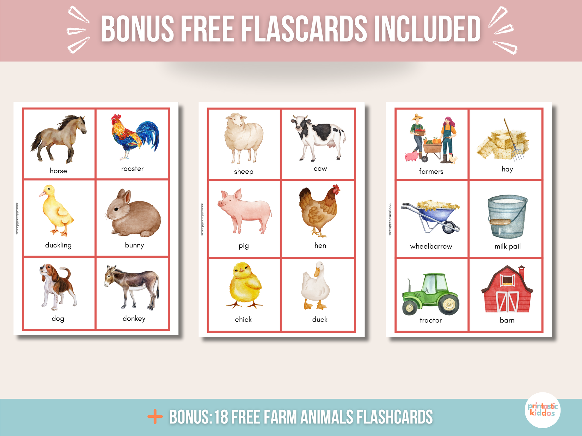 As a special bonus, you’ll receive free printable farm-themed flashcards to expand your little one’s learning experience. Double the fun, double the educational value!