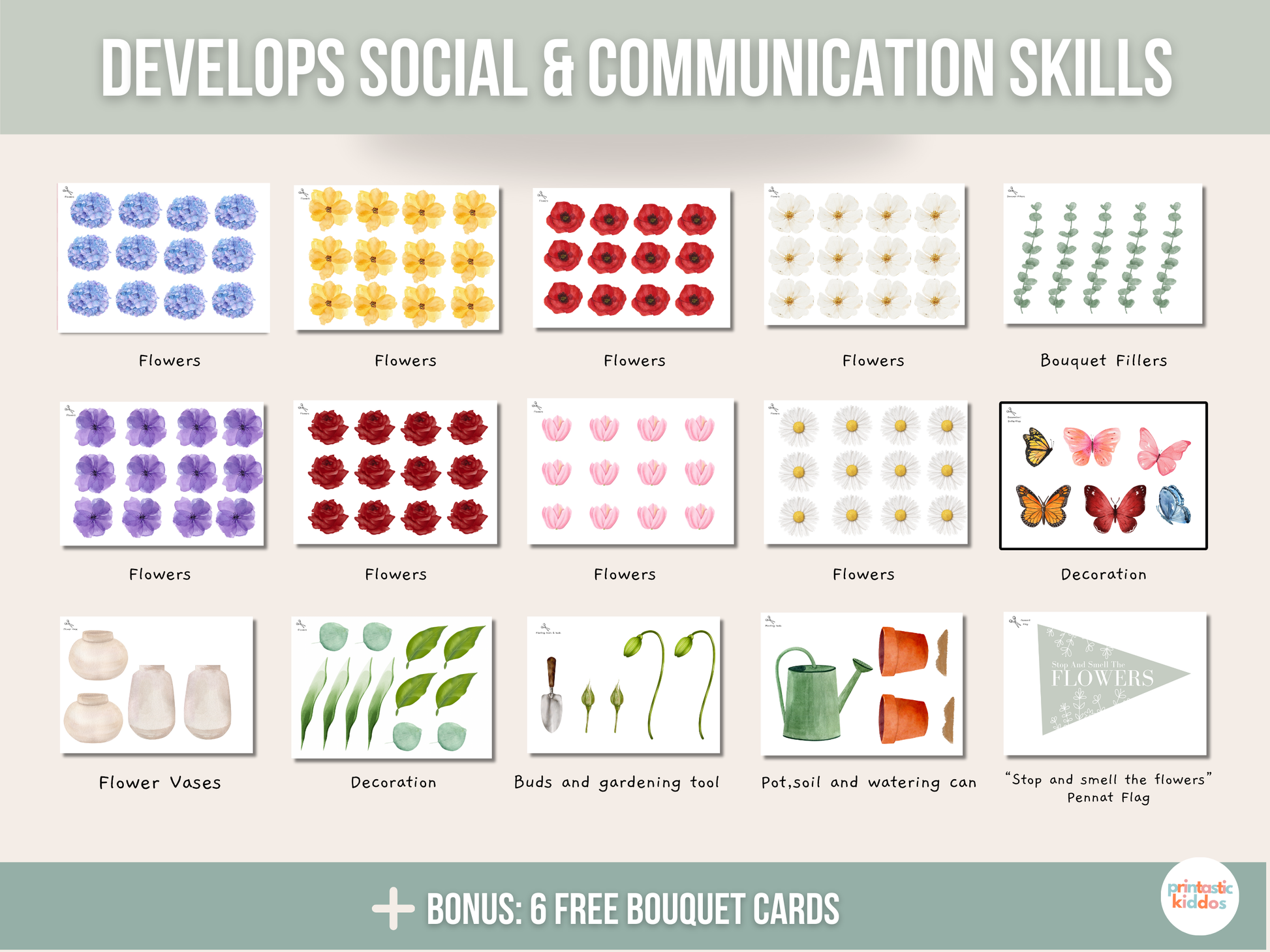 Inspire creativity with our pretend play flower shop printable! Kids can role-play as florists, arrange bouquets, and “sell” flowers using printable money and order forms. Perfect for imaginative play, learning social skills, and developing fine motor skills. Instant download & print for endless fun!
