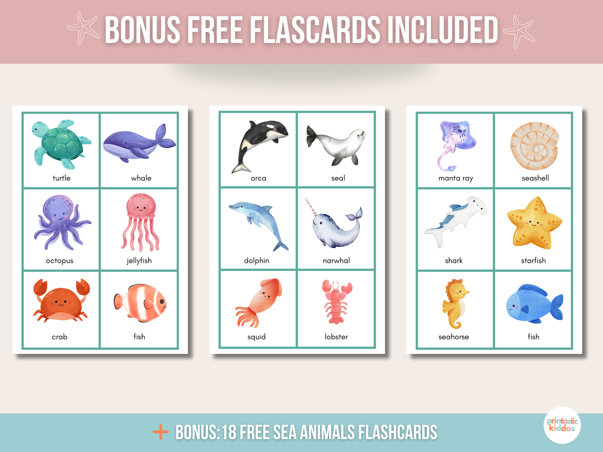 As a special bonus, when you purchase today, you’ll also receive free printable ocean-themed flashcards to further expand your little one’s knowledge and enhance their learning experience. Double the educational fun!